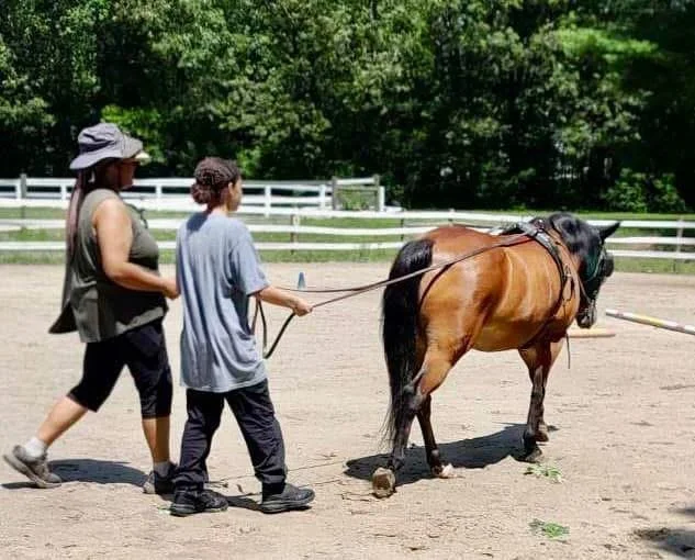 Everyone gets a chance to take a turn getting on the horse and learning the beginning skills of riding, creating a fun and supportive experience for all.